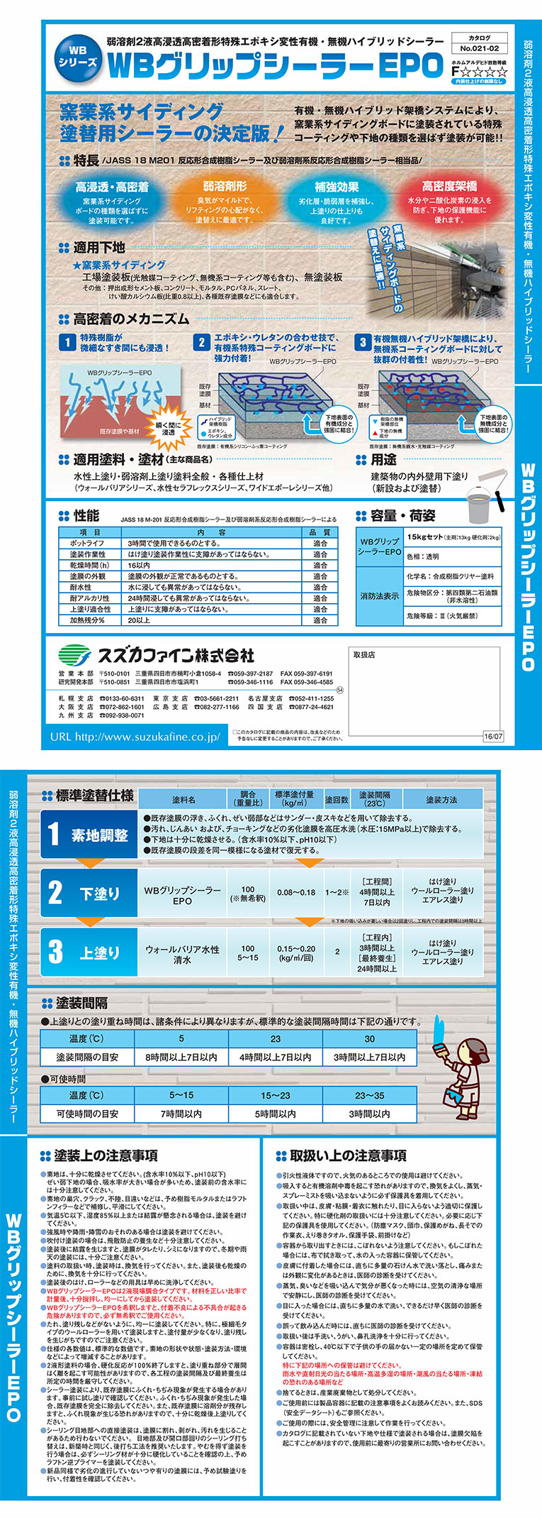 | 適合上塗材 | ウォールバリアシリーズ、水性セラフレックス シリーズ、ワイドエポーレシリーズなど |